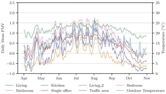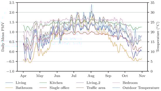 3.3.1. Analysis of Fanger’s PMV