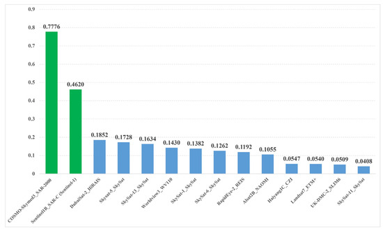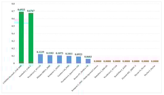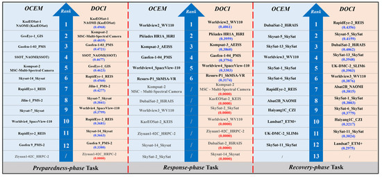 On the basis of the results of the former two subsections, the OCEM values of the satellite sensors of different observation tasks were calculated using Equation (1).