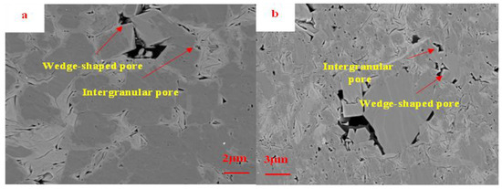 SEM image of intergranular pores of Funing Formation shale in the Gaoyou Sag. (a): Intergranular pore, L-2. (b) Intergranular pore, L-5.