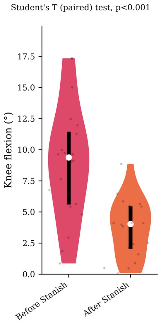 Corresponding knee flexion before and after a Stanish protocol in the IGT group (n = 20).