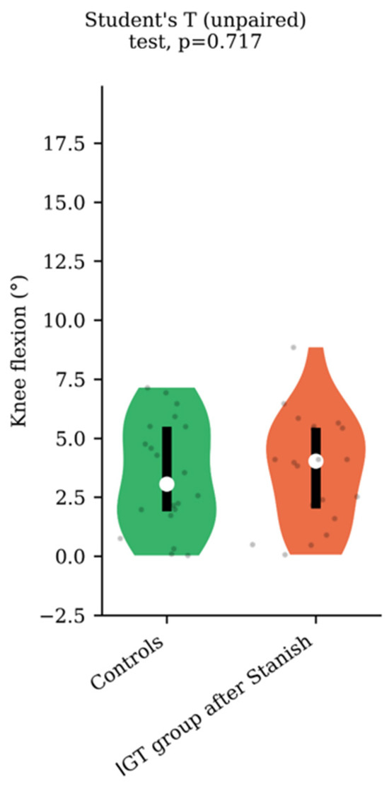 Knee flexion comparison between IGT after Stanish protocol (n = 20) and controls (n = 20).