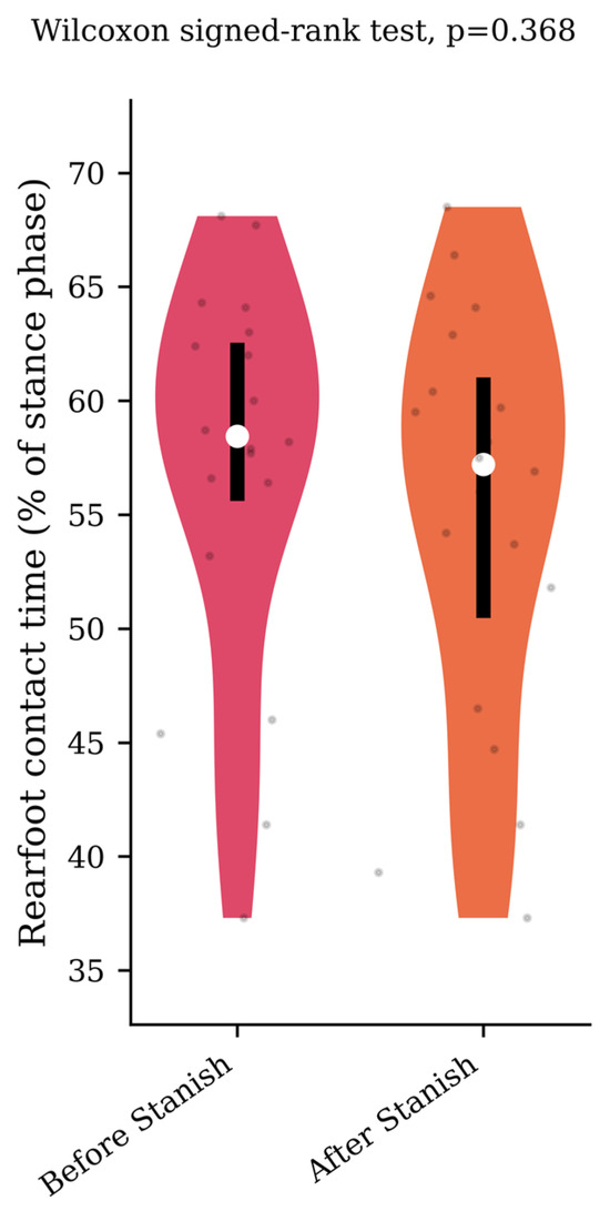 Rearfoot contact time before and after a Stanish protocol in the IGT group (n = 20).