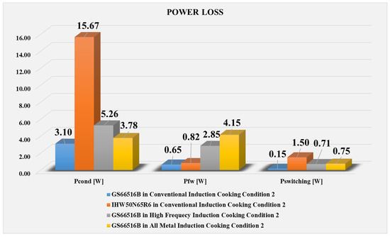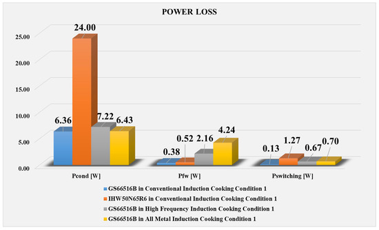 Power losses for high-frequency induction cooking operations (GS66516B).