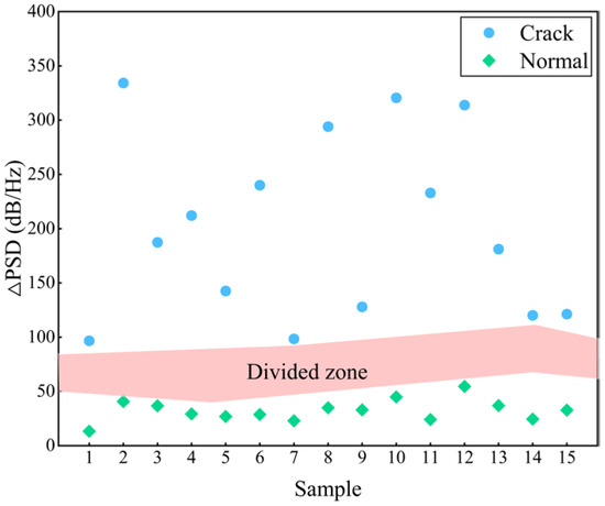 In addition, it can be seen that the minimum value of the transverse crack’s PSDmax is greater than the maximum value of the intact pavement sample, PSDmax. So, it is reasonable to select the PSDmax as a classification indicator.