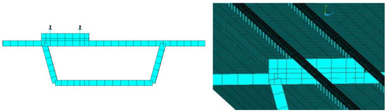 The velocity and force of the track, integral ballast bed, and box girder bridge joints obtained from the vehicle–track–bridge coupling dynamics model are used as input conditions for power flow analysis. However, in the dynamic analysis modeling presented in this paper, beam elements and plate shell elements are used for the track and box girder bridge, respectively. This approach makes it impossible to directly extract the nodal forces of each node. Therefore, the internal stress of the node is extracted from the element in which the node is situated, rather than directly from the node force.