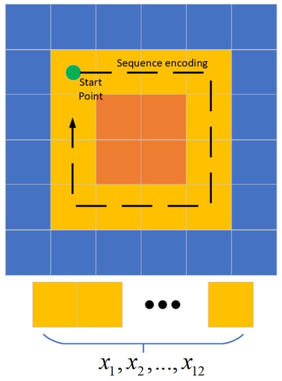 By converting the image feature format, we preserve the image features and assign them sequence properties using the H-value as the sorting criterion. For each 32 × 32 × 1 pixel block, the PE calculation process starts from the internal 4 × 4 circle (12 pixels) and ends with the external 32 × 32 circle (124 pixels). The specific calculation method is shown in