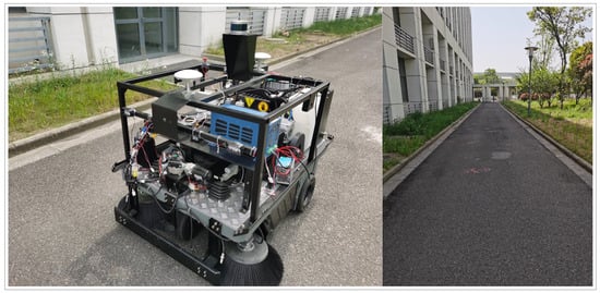 26] proposed the inverse perspective transformation based on the pitch angle and yaw angle of the vanishing point, which finally realizes the solution of the position of the image plane corresponding to the road plane captured during the working process of the sweeper.