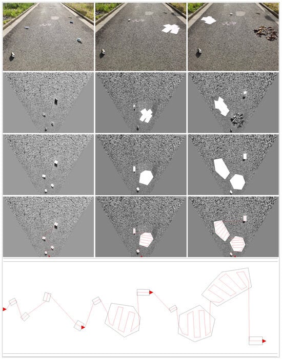 Many objects in the roadway, such as leaves or bottles, tend to be distributed within close proximity, thus forming a group or cluster. Treating them as discrete objects would only increase the number of nodes to be passed in the TSP, leading to a steep increase in computation cost. Therefore, as shown in