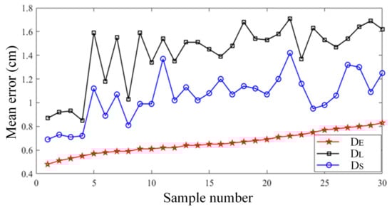 A comparative experiment was carried out to verify the performance of our method compared with existing works [3,6,21] in terms of the mean errors of DE, DL, and DS. Among them, Refs. [3,6] are based on the image modality for ore rock fragmentation calculation. Ref. [21] is based on the point cloud modality for ore rock fragmentation calculation. Table 1 shows the experimental results of different methods.