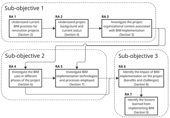 As mentioned, this research aims to understand the use of BIM and related challenges in complex renovation projects. This requires obtaining a better understanding of the decision making, information exchange, and data integration processes, which was realized by analyzing the collected project data in a systematic and structured way. Figure 1 shows the specific research activities (RAs) conducted by the research team to conduct this analysis, followed by a brief introduction of each RA.