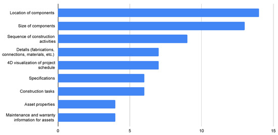 In this regard, the construction methods that utilize Building Information Modeling (BIM) have the potential to address many of the significant challenges encountered in design and construction of renovation and expansion projects [9]. The use of BIM has increasingly grown in the Architecture, Engineering, and Construction (AEC) industry due to its many benefits during the design and construction phases of building projects [10,11,12,13]. BIM allows practitioners to develop, capture, and manage building information, which can subsequently enable activities such as as-built documentation, calculation of alternatives and optimizations, onsite progress tracking, measurements, and monitoring activities, which are essential to improve project management and risk mitigation during a facility’s operations and renovation phases [14]. Using BIM can be especially beneficial in construction projects involving existing buildings. According to [15], the emerging benefits of BIM in this area are as follows: