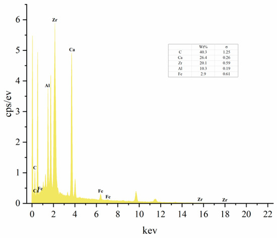 A solution with a concentration of 0.1 mol/L of “ZrOCl2·8H2O” was prepared. Subsequently, steel slag and fly ash were separately immersed in this zirconium-containing solution. After undergoing 12 h of continuous agitation at 25 °C, the two modified substrates were prepared. This involved washing, drying, and grinding the substrates. Following these steps, cement, foaming agent, and other requisite materials were added in accordance with the specified proportions. This process resulted in the production of Zr-EPRC particles, denoted as No. 3 Zr-EPRC.