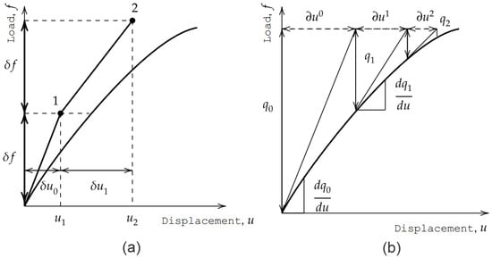 The use of incremental methods [31] has the intent of achieving an approximate solution to a certain problem with the application of successive load increments, as it is shown in Figure 5a.
