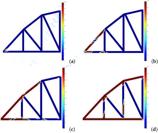 Development of the plastic connections for the NNRPIM: (a) 8.77 × N/m. (b) 1.40 × N/m. (c) 1.75 × N/m. (d) 2.28 × N/m.