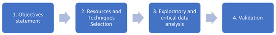 This paper addresses the objectives using the methodology schematically represented in Figure 1. After the objective statement, different resources and techniques are selected (Section 3) and applied (Section 4). The validation of the objectives is presented in Section 5.