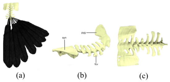 Schematic diagram of the tail heel bone. (a) Dorsal view of the tail of a bird. (b) Lateral view of the tail helix. (c) Top view of the tail helix.