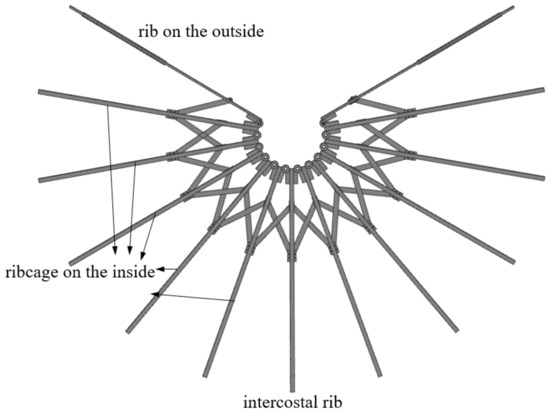 Antenna ribs simulate the upright process of the huddle. (a) Antenna’s unfolded state; (b) antenna’s folded state.