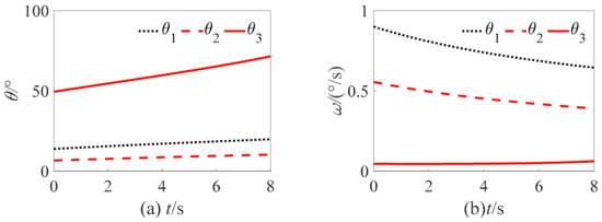 - The kinematic modeling of the new spatially deployable antenna mechanism is carried out, and the variation in kinematic parameters is obtained using an MATLAB solution, and the simulation of the rod motion is carried out using ADAMS software. The angle variation results obtained from ADAMS simulation are compared with the MATLAB ones to verify the correctness of the kinematic equations.