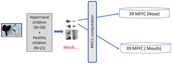 Speech data from one group of hypernasal children (N = 34) and one group of healthy children (N = 21) were recorded to create a test database. This speech database was then processed to obtain two new training databases as shown in Figure 4.