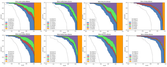 Subsequently, we conduct error analyses to further substantiate the effectiveness of our approach. As illustrated in Figure 6, we randomly select four categories for error analysis, encompassing objects of diverse scales. Our approach outperforms the baseline method across various thresholds. When disregarding localization errors, MSBA surpasses the baseline, attributed to our approach’s ability to offer more accurate classification information. Furthermore, when excluding errors associated with similar classes from the same supercategory and different classes, our method exhibits noteworthy enhancements compared to the baseline. This underscores MSBA’s superior location accuracy.