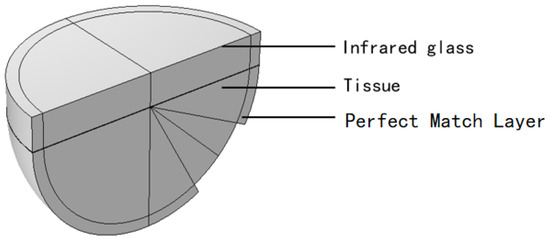 Schematic diagram of the simulation model: (a) is a schematic of the geometric model without infrared glass and with only human tissue; (b) is a schematic of the geometrical model with infrared glass.