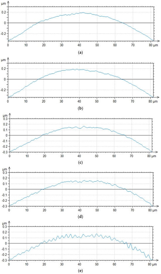 As mentioned above, the first stage of experimental research was a preliminary study aimed at determining the character of the irregularities of measured standards. The results of these measurements are shown in Figure 4.