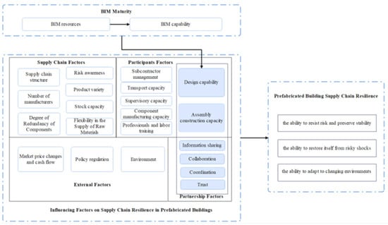 Relationship between BIM and factors influencing supply chain resilience.