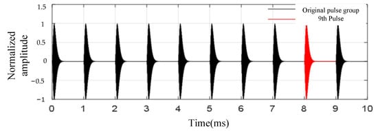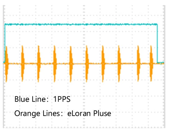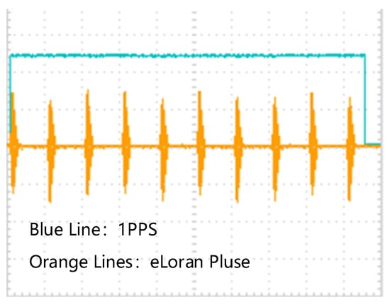 The transmitter uses Eurofix data link and “9th Pulse Modulation” technology to modulate the encoded data information onto a standard Loran-C signal, forming an eLoran signal. Among them, the Eurofix data link is mainly used for modulating the time code, leap second, system time deviation, system state, and other data, while “9th Pulse Modulation” is mainly used for modulating the differential enhancement and emergency communication data. A schematic diagram of the modulated pulse is shown in Figure 8.