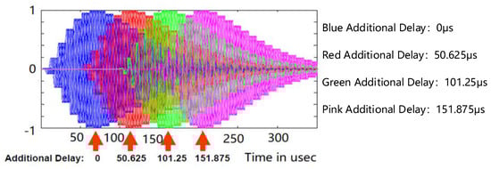 The zero sign offset of the additional pulse is 1000 µs. The delay time of the remaining 31 symbols relative to the zero symbol is shown in microseconds. The ideal delays are given by the formula: