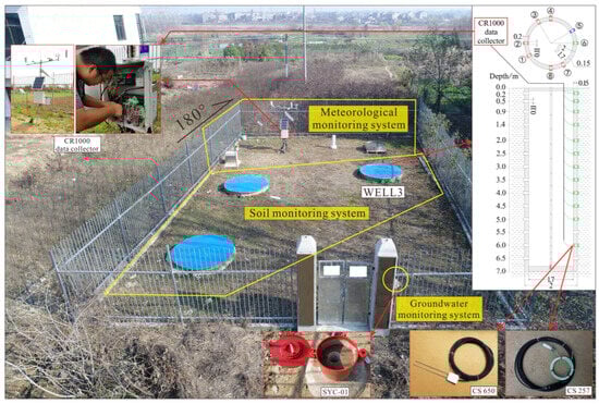 The field test site included three monitoring systems []: a meteorological monitoring system, a soil monitoring system, and a groundwater monitoring system. The ground conditions were all bare land during the monitoring period from 1 January 2018 to 4 November 2020. Equipment models, factors, and monitoring frequency of the field test site are shown in Table 2.