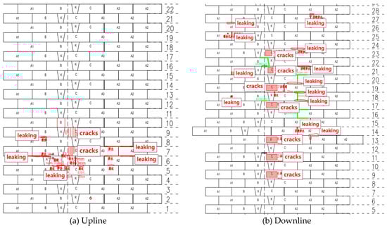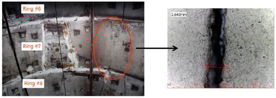 The tunnel commenced operations in December 2006. By the first half of 2020, many rings of tunnel lining segment in the tunnel’s left and right lines exhibited widespread and numerous cracks. The most pronounced cracking was observed in ring No. 7 of the upline, as depicted in Figure 2.