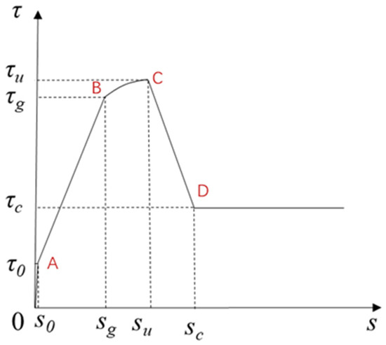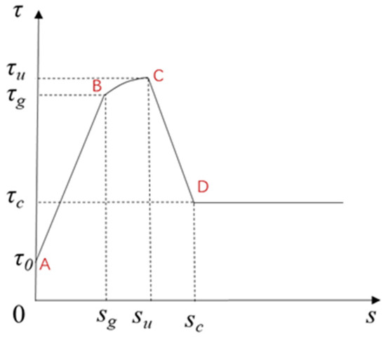 Figure 14. Simplified bond stress–displacement relationship diagram.