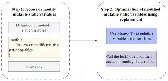 The basic Thetis framework is shown in Figure 2. Specifically, Thetis manages five types of unsafe operations in a flexible, safe, and efficient manner, as discussed in Section 2. Thetis is designed based on a finite type of unsafe operations, reducing the complexity of optimization and the possibility of false positives and false negatives and ensuring that the system is as safe and reliable as possible. Firstly, it tries to directly replace the mutable static variables and union types with safe implementations to eliminate unsafe fragments.