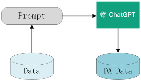 To address these issues, before formally using ChatGPT for data augmentation, it is necessary to pre-pend a prompt for the sentences to be augmented. For example: “For the sentences: [sentences], please use sentence recombination to generate four augmented data instances in the provided data format”. Subsequently, the sentences with the added prompts are provided to ChatGPT to complete the data augmentation task, and the augmented data does not require further modification. The overall process of using ChatGPT for data augmentation is shown in Figure 2.