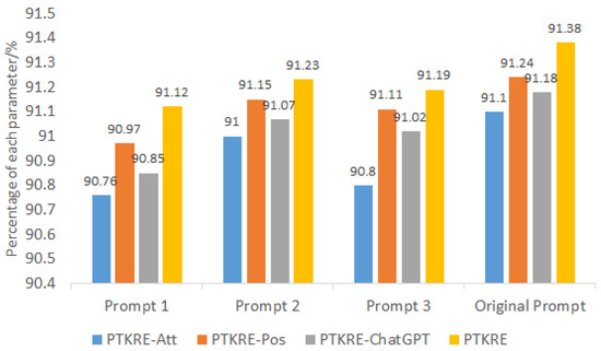 In the experiments, we used RoBERTa as the pre-trained language model and explored the impact of different prompt templates on the performance of the PTKRE model. The relevant experimental results are presented in Figure 3: