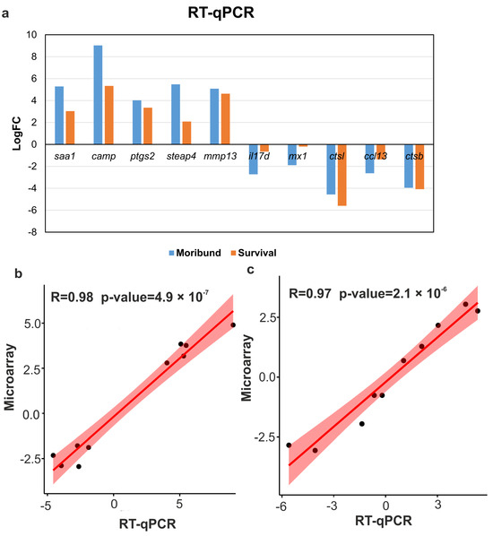 Chicago/Turabian StyleMałachowicz, Magdalena, Andrzej K. Siwicki, Stefan Dobosz, and Roman Wenne. 2023. "Application of 4 × 44 Oligo Microarray to Transcriptomic Analysis of Immune Response in Rainbow Trout Infected with Aeromonas salmonicida" Applied Sciences 13, no. 23: 12793. https://doi.org/10.3390/app132312793