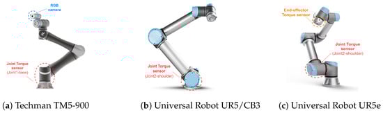 As a concrete example of the aforementioned, Figure 1 shows sensors integrated into some commercially available collaborative robots, from which it emerges that, while sensor types remain consistent, manufacturers can make different choices regarding which and how many sensors to integrate into their individual products.