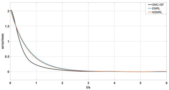 Analysis: When the system state is far away from the sliding-mode surface, that is, when , , the system state reaches the sliding-mode surface under the action of the variable speed term and the variable index term . As decreases and reaches 1, converges to and converges to . This means that when the state outside the stable point is close to the sliding-mode surface, the coefficient of the whole reaching law gradually decreases, thus reducing the flutter. When , , the speed of the variable exponential term in the reaching law is ; compared with in reference [20], it is obvious that can be obtained, and the convergence law proposed in this paper is faster. In summary, from the initial state of the system state to reaching the sliding-mode surface and finally reaching the stable point, the approach law proposed in this paper consistently achieves a faster speed than the traditional approach law and suppresses the generation of high-frequency flutter.