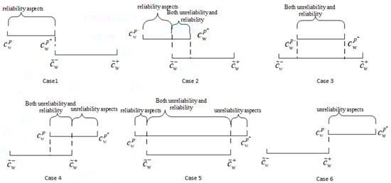 Case 5: When the actual interval travel cost and the TCB satisfy , the ATC’s reliability aspects are given by and , and the corresponding probabilities of not exceeding the TCB are and ; the ATC’s unreliability aspects are and , and the corresponding probabilities of exceeding the TCB are and .