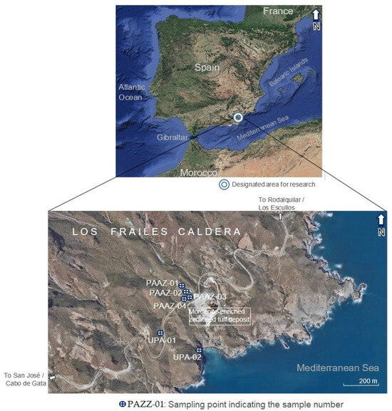 - Martín, D.A.; Costafreda, J.L.; Presa, L.; Zambrano, J.; Costafreda, J.L., Jr. A New Study of the Lower Levels of the Los Frailes Caldera (Spain) for the Location and Characterisation of Pozzolans as Construction Materials. Constr. Mater. 2022, 2, 40–52. [Google Scholar] [CrossRef]