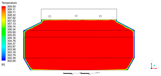 The temperature and humidity contours were obtained from 13 July to 16 August. The temperature, micro-airflow field, and moisture distribution of the cargo hold on 23 July, 3 August, and 13 August were selected, as shown in Figure 7, Figure 8 and Figure 9.