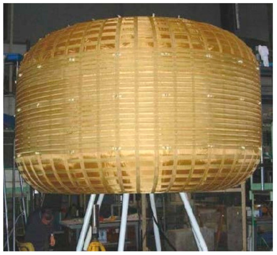 - Harris, P.; Kennedy, K. Wound Construction of Inflatable Space Structures. In Proceedings of the Seventh International Conference and Exposition on Engineering, Construction, Operations, and Business in Space, Albuquerque, NM, USA, 27 February–2 March 2000. [Google Scholar] [CrossRef]