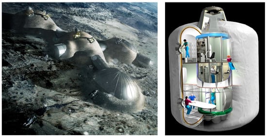 The Earth’s dwindling resources, together with climate change issues, have spread the notion of space civilizations. Future space habitation is envisioned to be the circumvention of mankind’s sustainability in the solar system. This is why large space agencies in the US and European Union are presently tracing the construction of permanent extraterrestrial habitats on the Moon and Mars [1]. From the safety viewpoint, a long-duration stay that provides immunity in planetary environments needs resilient structures [2], sheltering human inhabitants (or astronauts) so that they can discover the atmosphere, lithosphere, biosphere, and even hydrosphere of their surroundings. On a positive note, recent evidence of water presence on lunar and Martian surfaces has given fresh impetus for rendering off-Earth life a reality [3,4,5].