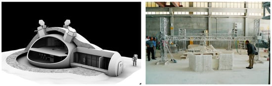 So far, some large-scale projects pertinent to the application of 3D printing techniques in outpost construction have been conducted. The main examples are the works carried out by Khoshnevis and Zhang (2012) [21], Cesaretti et al. (2014) [20], and NASA’s 3D-Printed Habitat Challenge Competition (2019) [79]. In what follows, the above-mentioned projects and their achievements are briefly described.