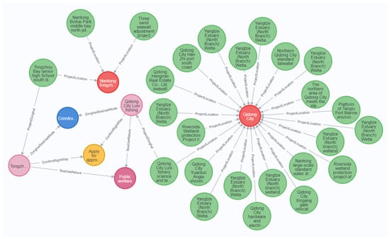 We choose the Neo4j [28] graph database to store ocean engineering knowledge as it offers better application performance compared to relational databases. The method used in this paper to develop a KG combines manual establishment by domain experts with semi-automatic tools. Entities are represented as nodes, with entity attributes serving as node attribute values and relations between entities as edges. Neo4j can efficiently handle large data while supporting the inference of KG. We develop an ocean engineering knowledge graph, which contains nine types of entities and eight types of relations, comprising 1681 entities and 5811 relations. Figure 4 is the representation in Neo4j.