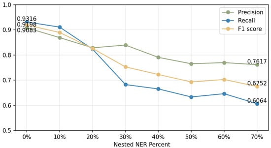 The performance of NER with different nested percent.