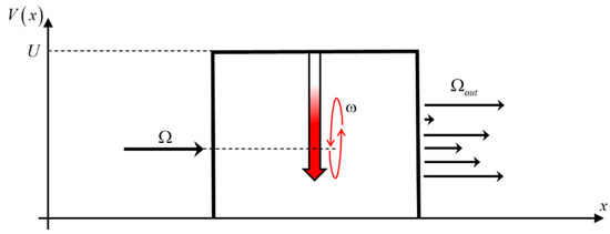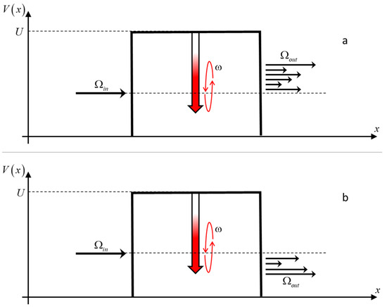 The system is presented in Figure 1. A particle with energy penetrates an opaque barrier. In the center of the barrier there is an oscillating well. For simplicity, the well is presented by a delta function; however, this is a very good approximation for the case where the well is considerably narrower than the particle’s de Broglie wavelength [32].