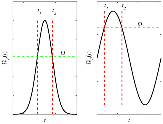 However, in the case where the well oscillates harmonically, then in every period there are two extrema—one minimum and one maximum (see the right panel of Figure 2). Now, if , then the same criterion (3) can be applied for both minima and maxima. In that case, then