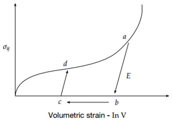 Figure 5 shows an example of the tensile cut-off stress (TCS) unloaded from point a to point b, then unloaded to point c, and finally reloaded to point d. At point d, the reloading continued along the loading curve. Non-zero values should be used as the TCS value to prevent material disintegration under small tensile loads. For a higher TCS value, the material exhibited a similar response behavior in both tensile and compressive states.