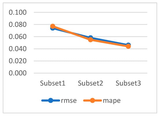 Table 5 shows the RMSE and MAPE results obtained for Subset3. It can be seen from the table that these results are lower for Model1 and Model2 than for Model3. When Model1 and Model2 are compared, it can be seen that Model1 has more successful results in terms of RMSE and MAPE values.